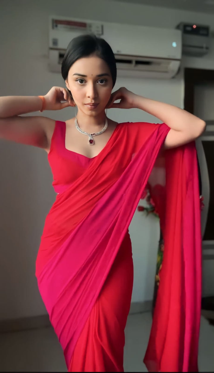 Rani Pink Color 1-Min Georgette Ready To Wear Saree With Blouse Piece
