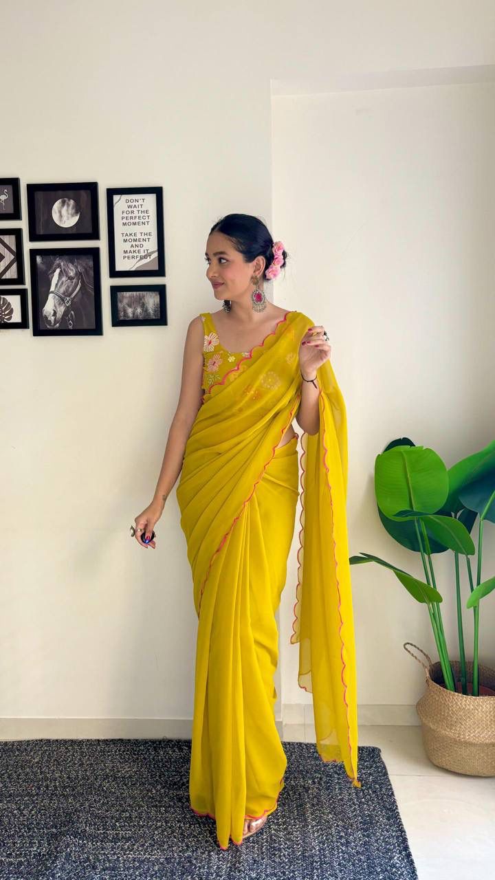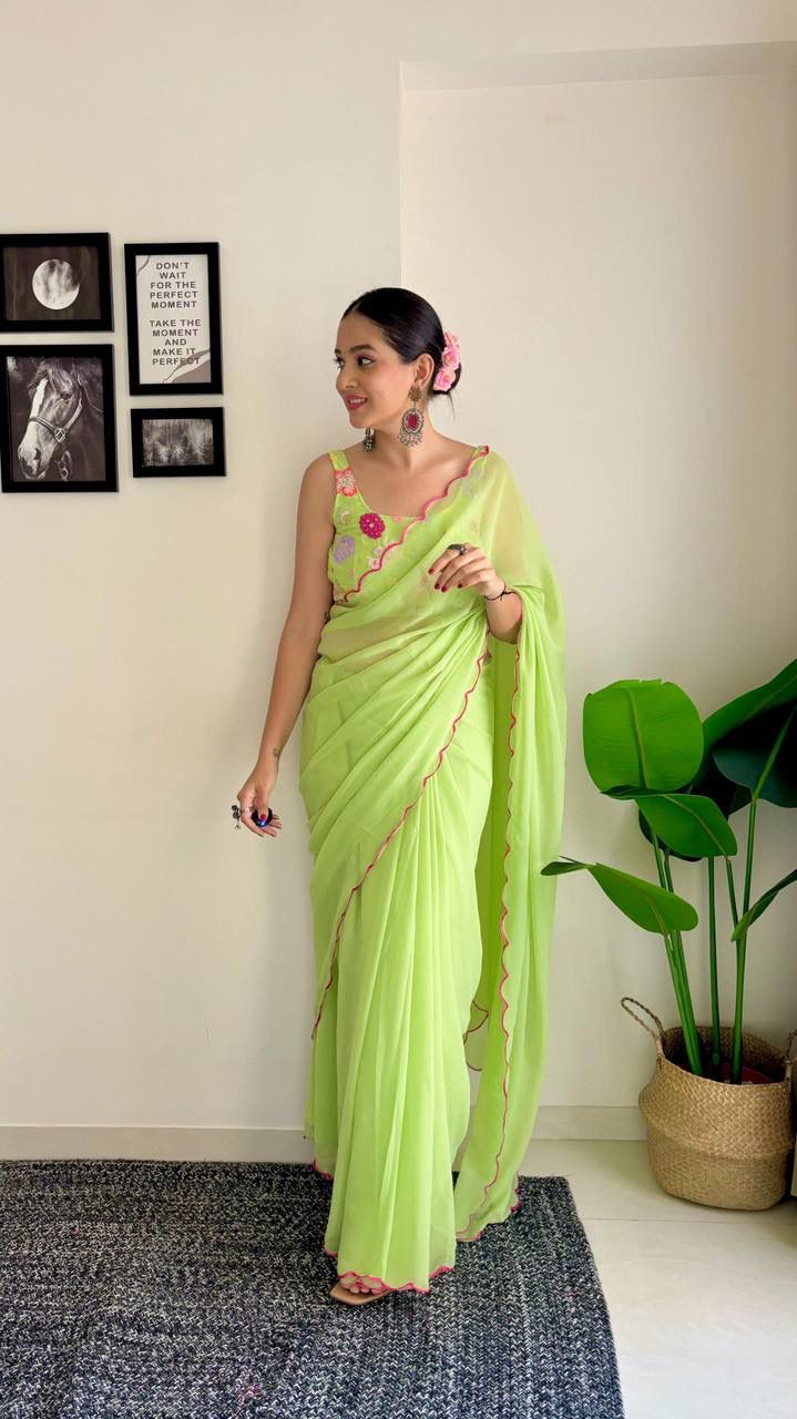 Saree Fabric: Fox Georgette with ari cut work on the border.