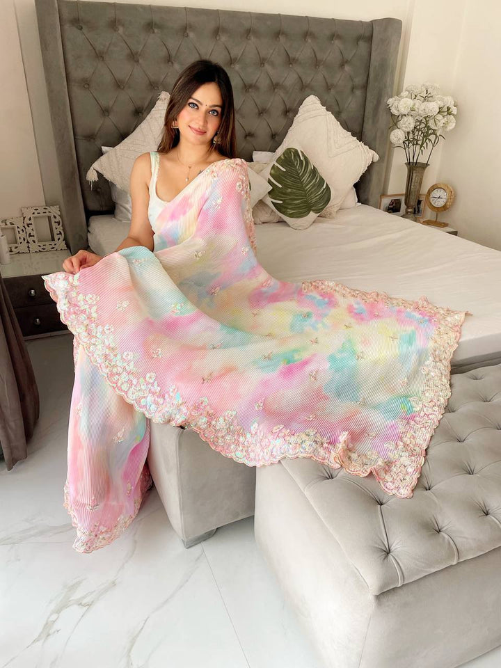 Beautiful Sequance Embroidery Work With Soft Georgette Saree