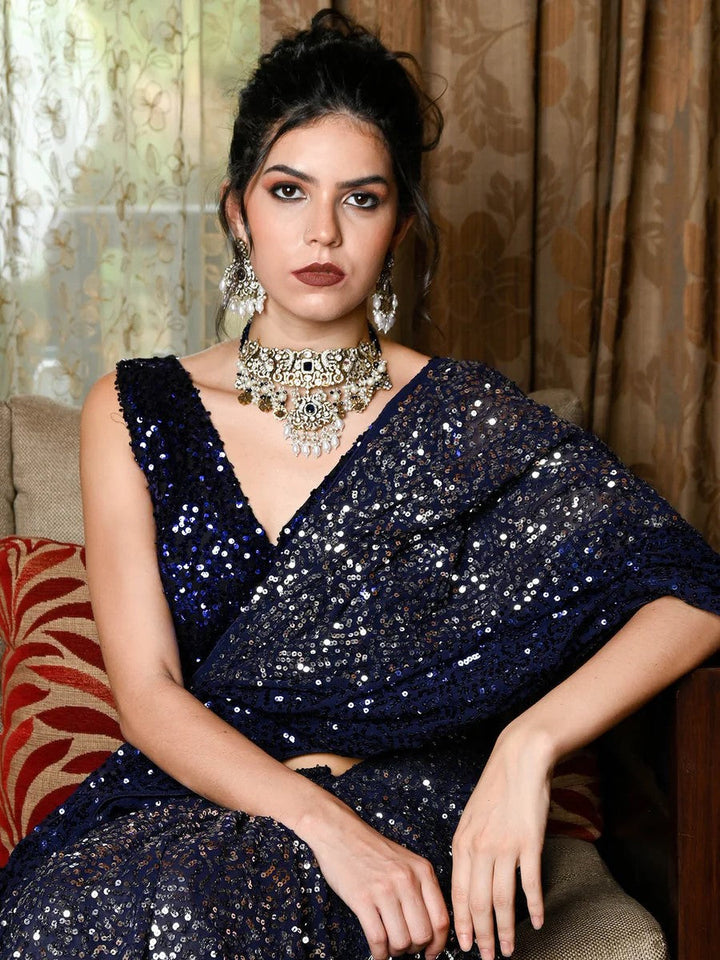 Blue Fancy Sequence Work Georgette Saree