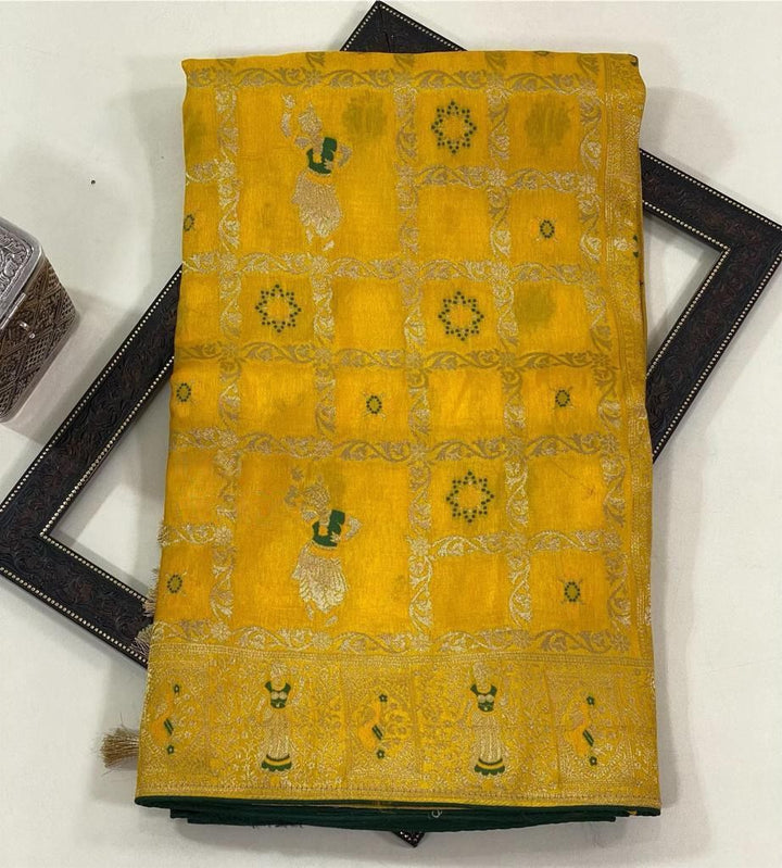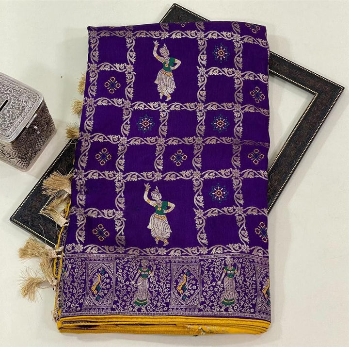 Pure Dhola Silk Weaving Saree With Rich Zari Wooven Pallu With Fancy Taseels And Rich Zari Wooven Border With Meenakari Jaal Weaving In Full Saree Pairs With Contrast Piping Lace In Full Saree With Butti Contrast Blouse