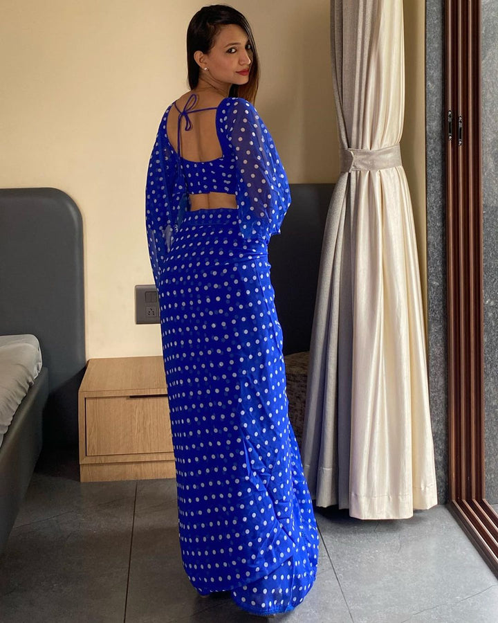 Get ready to dazzle in this beautiful Embrocation 1-Minute Ready To Wear Blue Georgette Saree! Made with lightweight georgette fabric, this saree is perfect for any occasion. Simply slip it on and you're all set to turn heads.