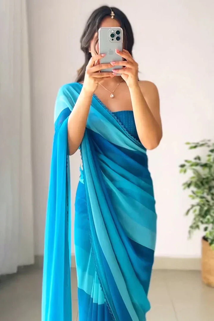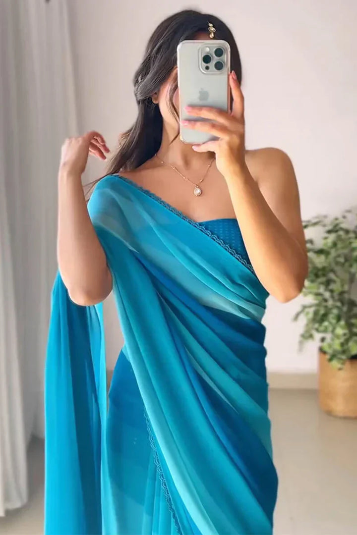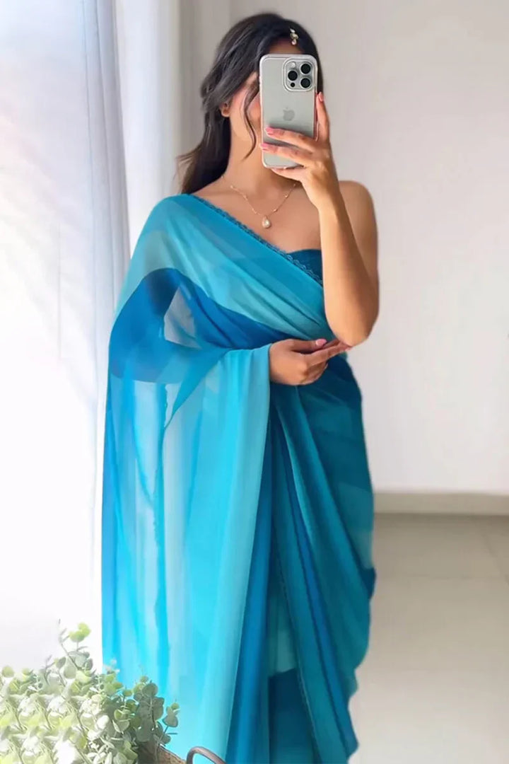 Elevate your elegance with the Marvellous 1-Minute Ready To Wear Firozi Georgette Saree. Crafted from luxurious georgette fabric, this saree exudes sophistication and grace. With its striking firozi color and intricate detailing, this saree is perfect for any special occasion.