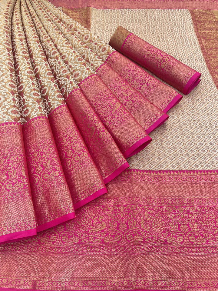 Pure Kanjivaram Silk Saree With Contrast Gold Zari Rich Weaving Pallu