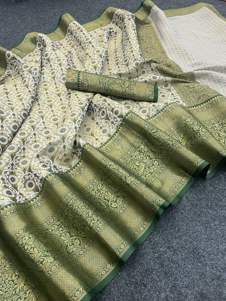 Pure Kanjivaram Silk Saree With Weaving & Contrast Border & Contrast Gold Zari Rich Weaving Pallu