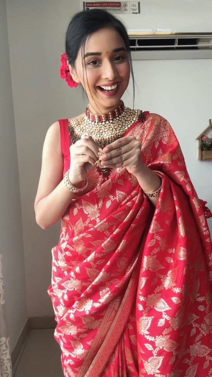 Red Colour 1-Min Jacquard Ready To Wear Saree With Blouse Piece