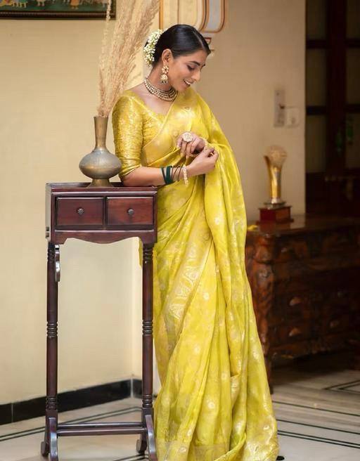 Soft Banarasi Silk Saree With Bewitching Blouse Piece