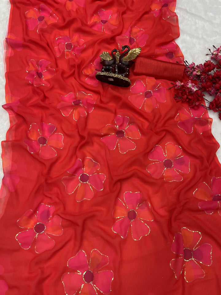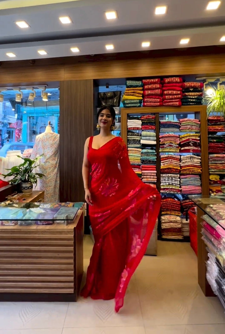 Red Festive Party Wear Georgette Saree with Hand Sequin Work
