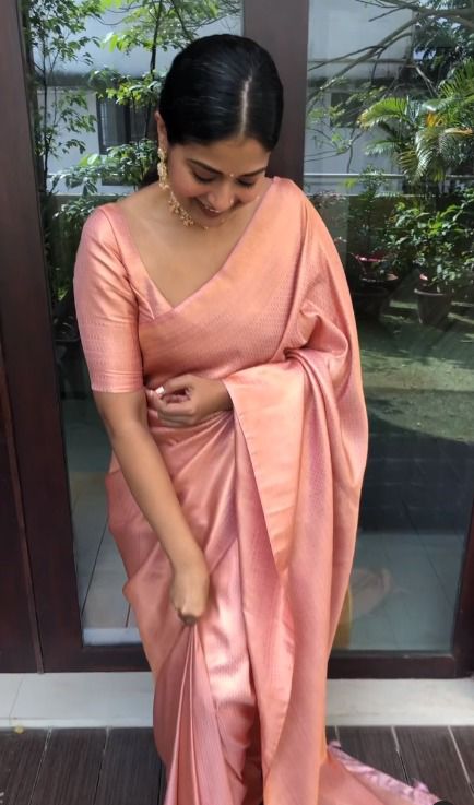 Salmon Pink Colour Kanjivaram Woven Silk Saree With Blouse Piece