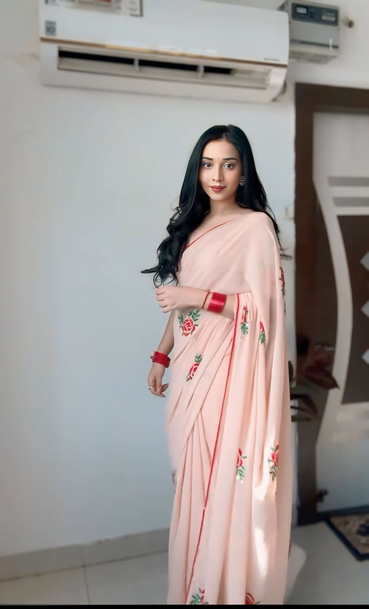 Staring 1-Minute Ready To Wear Peach Georgette Saree