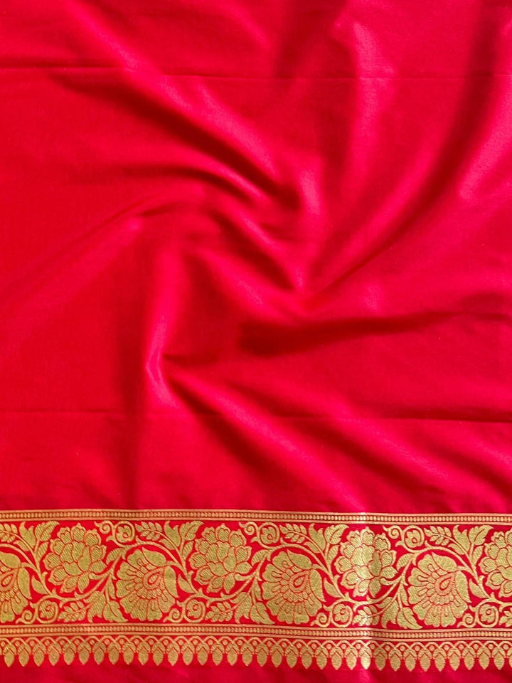 Zari Work: Rich zari (gold or silver thread) is often incorporated into the design, especially along the borders or pallu, creating a stunning contrast.